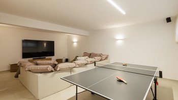 Die Villa Kassi ist sowohl für Auszeiten und auch für Unterhaltung gut ausgestattet. Ein Kinoraum, ein Fitnessraum und ein Arbeitszimmer bieten separate Räume zum Rückzug, während die Hauptwohnbereiche alle zum Kochen, Essen und Entspannen zusammenbringen.
