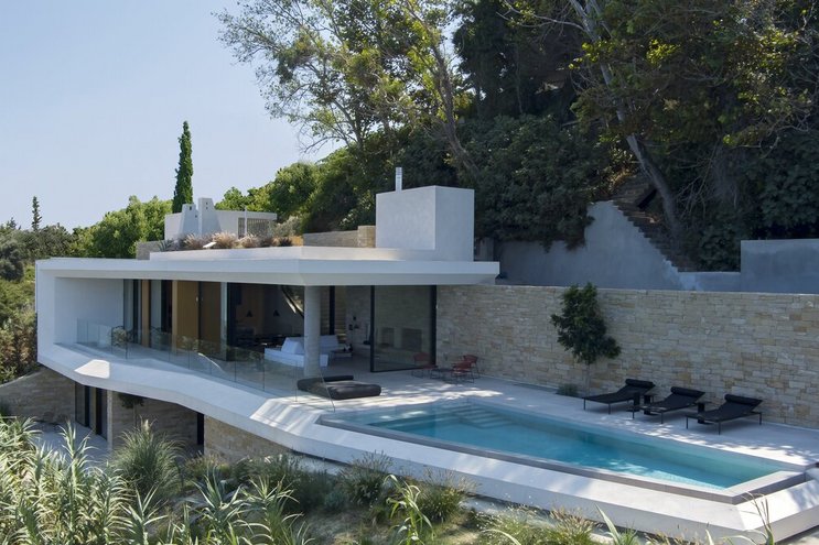 Diese moderne, neu erbaute Unterkunft in Zakynthos verfügt über wunderschön eingerichtete Innenräume und eine große Poolterrasse in einer atemberaubenden Lage.