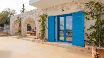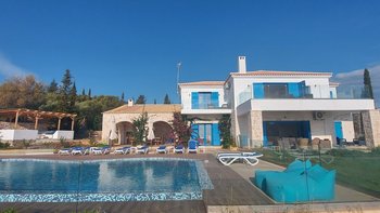 Der Außenbereich dieser Villa ist der Ort, an dem sie wirklich zum Leben erweckt wird, wo ein 13 m großer Pool ideal für große Gruppen ist oder Kindern das Schwimmen beibringt, mit herrlichem Blick auf Kefalonia und den Peloponnes. Dessen Terrasse ist der perfekte Ort, um vor dem Abendessen einen Cocktail zu genießen, während der Esstisch im Freien ist, wo die Gäste lange, faule Mittagessen und laue Abende unter dem Sternenhimmel genießen können. Agios Nikolaus ist nur eine kurze Autofahrt entfernt, wo ein kleiner, aber schöner Hafen eine Auswahl an Tavernen am Wasser beherbergt. Außerdem können Sie von hier aus Bootsausflüge zu den berühmten blauen Höhlen und dem Strand von Navagio unternehmen.