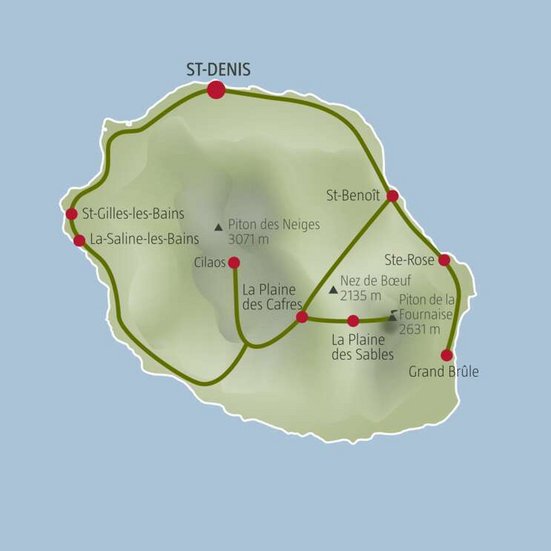 Hier kommen Aktive und Outdoor-Sportfans voll auf Ihre Kosten. Sie erleben die Insel La Réunion mit all ihren Facetten – bei einer Kanufahrt und einem Katamarantörn zu Wasser, während einer eindrücklichen Lavatunnel-Tour unter der Erde, bei diversen Spaziergängen und Wanderungen durch die Vegetation und aus der Vogelperspektive bei einem unvergesslichen Rundflug per Ultraleichtflugzeug. Eine Erlebnisreise die ihresgleichen sucht.