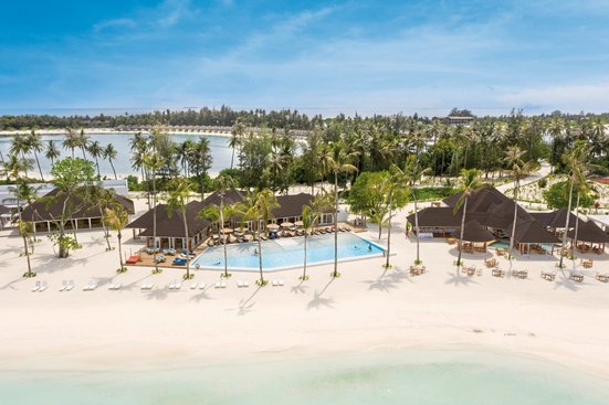 Ihre Vorteile: Auf zwei, durch eine kleine Brücke miteinander verbundenen Inseln gelegen: Die ca. 740 m x 140 m große Haupinsel Olhuveli mit üppiger Vegetation und die ca. 330 m x 170 m große „Dream Island“