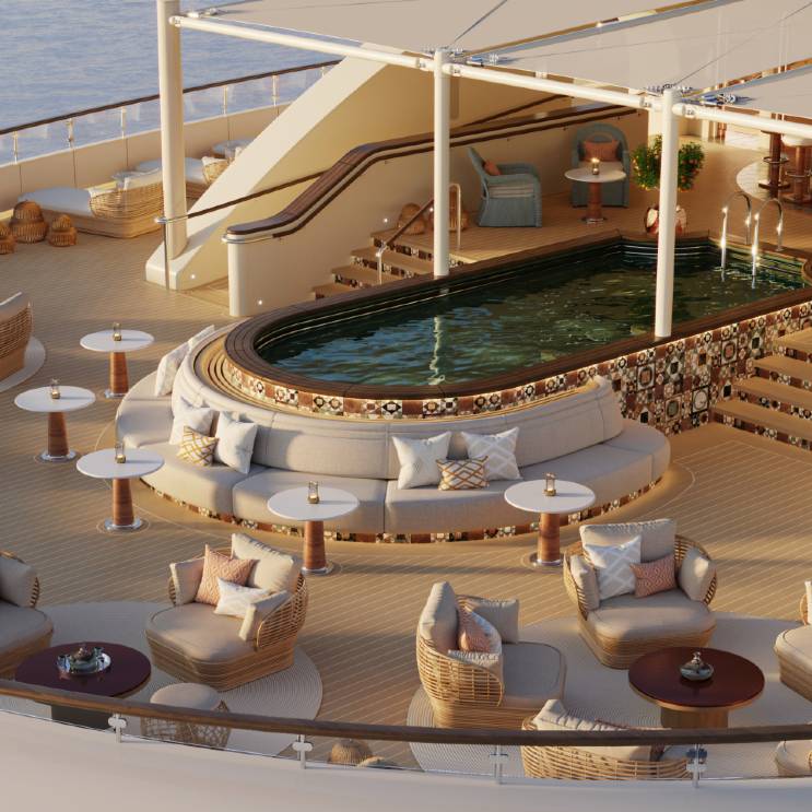 Mit 95 weitläufigen Suiten, alle mit eigener Terrasse und raumhohen Fensterfronten, setzt die Four Seasons I neue Massstäbe hinsichtlich Privatsphäre und Wohngefühl. Die Suiten bieten rund 50 % mehr Platz pro Gast als jede andere Yacht ihrer Klasse – ein Niveau, das in der Branche einzigartig ist. Highlight ist die spektakuläre Funnel Suite über vier Ebenen, eingebettet im gläsernen Schornstein der Yacht und konzipiert für Panoramaaussichten, die ihresgleichen suchen.