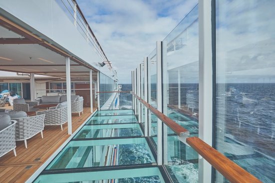 Beste Aussichten für leidenschaftliche Weltentdecker: Mit der HANSEATIC spirit untermalt Hapag-Lloyd Cruises seine Expeditionskompetenz. Die kreative Grundidee «Inspired by nature» setzt Massstäbe, sowohl beim Innendesign mit organischen Stoffen, Farben und Formen als auch bei der grosszügigen, erlebnisorientierten Gestaltung der Aussendecks, die für beste Sicht und grösstmögliche Nähe zu spektakulärer Natur sorgt. Ein Höhepunkt sind die zwei ausfahrbaren gläsernen Balkone, die Ihnen das Gefühl geben, über dem Ozean zu schweben. Der Deckumlauf auf dem Vorschiff erlaubt hautnahe Naturerlebnisse. Zum Entspannen erwartet Sie der lichtdurchflutete Ocean Spa mit grossem Saunabereich. Drei Restaurants mit freier Tischwahl verwöhnen Sie mit einem grossen kulinarischen Angebot. Der Umwelt zuliebe kommt flottenweit nur noch schwefelarmes Marine-Gasöl zum Einsatz.