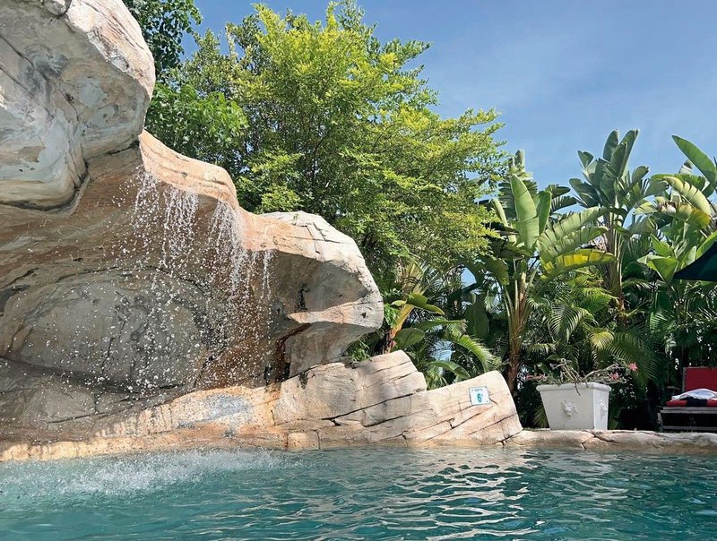 - 1 Pool: (mit Wasserfalll), Liegen, Badetuch