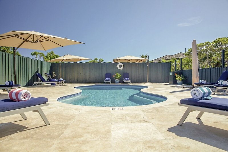 - Sandstrand: flach abfallend, gehört zur Anlage