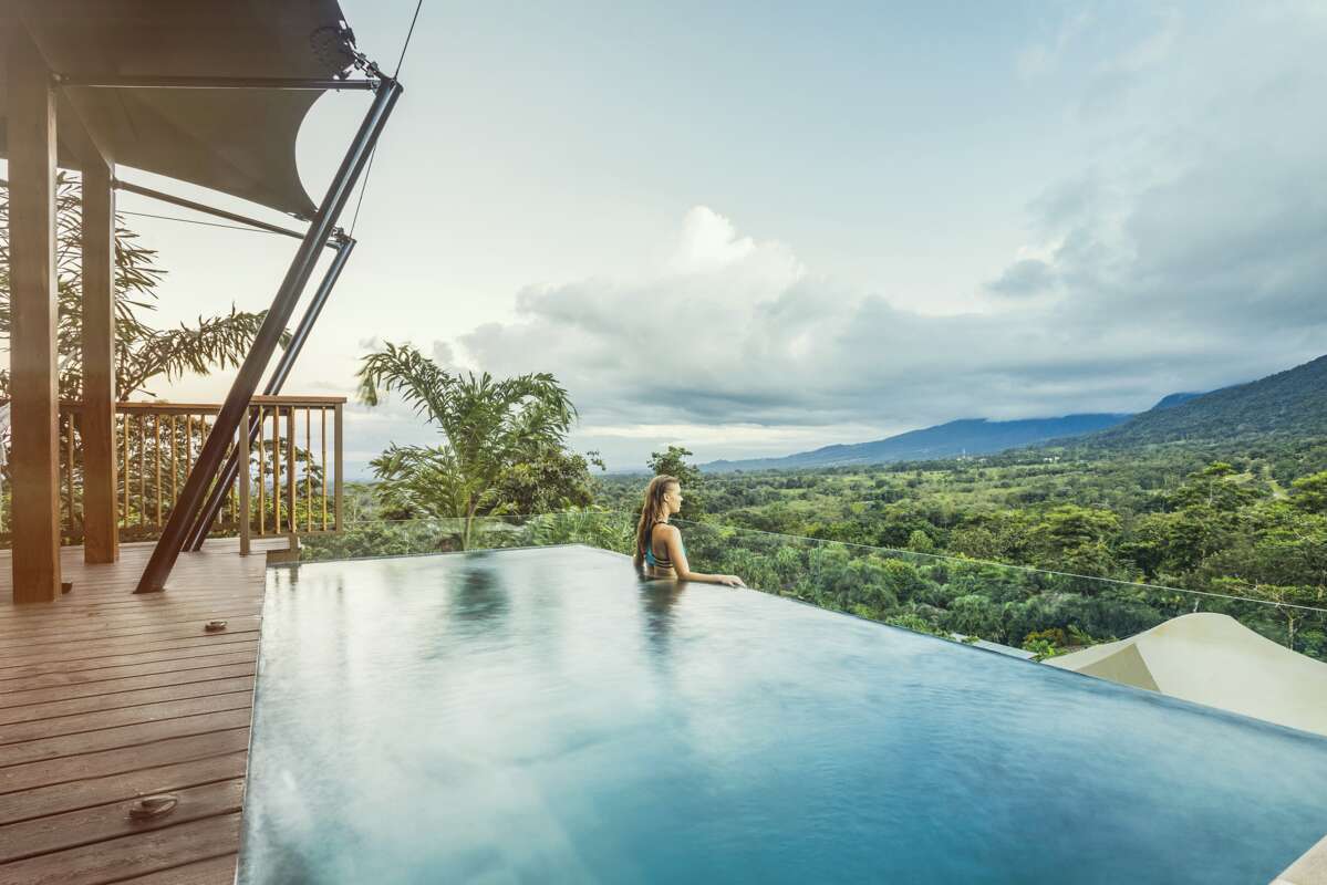 Am Fusse des majestätischen Vulkans befinden sich die 18 neu errichteten Luxus-Zelte als Teil des exklusiven Nayara Resorts. Mit spektakulären Aussichten auf den Vulkan, Bad, Outdoor-Dusche, Klimaanlage, Holzfussboden sowie einer Terrasse mit Plunge Pool, gespeist aus den heissen Quellen der Umgebung, bieten die Zelte höchsten Komfort. Ein Empfangszelt, der grosse Swimmingpool mit swim-up Bar, kleine Thermalpools und ein neues Gourmetrestaurant sorgen für optimale Erholung und Genuss.