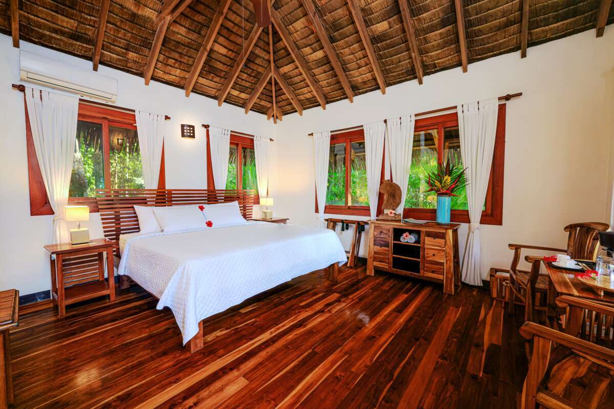 InfrastrukturFreistehenden Luxury-Cabins, alle mit Hartholzböden, Balkon, Hängematte und Blick auf Ozean oder Regenwald. Die Cabins bieten viel Platz und Privatsphäre, einige sind zweistöckig. Zur Infrastruktur gehören ein offenes Strandrestaurant, Bar sowie ein Swimmingpool.