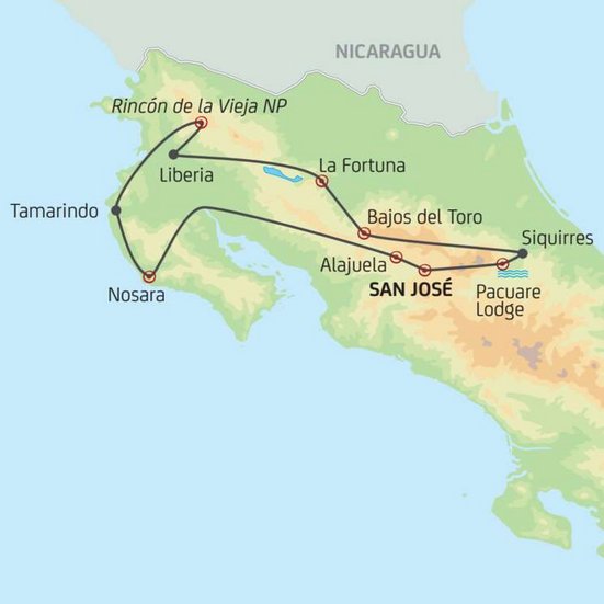 Die folgenden Tage stehen Ihnen zur freien Verfügung. Sie können über Hängebrücken von Baumkrone zu Baumkrone gelangen, auf erkalteten Lavafeldern mit Blick auf den Vulkan wandern, einen Ausritt geniessen oder eine Bootsfahrt im Caño Negro-Schutzgebiet unternehmen.