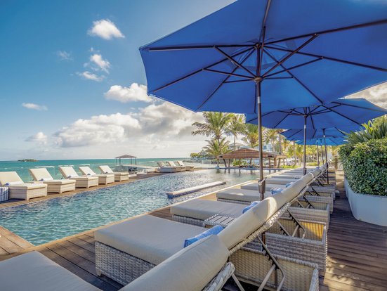 - 1 Pool: Infinity-Pool, nur für Erwachsene, Sonnenschirme, Liegen, Badetuch