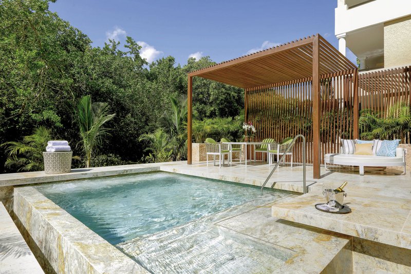 - 71-80 qm, Juniorsuite, Erdgeschoss, Poolseite, Gartenblick, kombinierter Wohn-/Schlafraum, Sitzecke, Schreibtisch, Doppelbett (Kingsize), 1 Sofabett, 1 Bad, Dusche, Badewanne, Whirlwanne, WC, separates WC, Bademantel, Badeslipper, Haartrockner, Kosmetikspiegel, Klimaanlage, Minibar, Auffüllung regelmäßig, Safe, Bügelbrett, Bügeleisen, 1 TV (Kabel-TV), Telefon, Kaffeemaschine, Kaffee/Tee, Terrasse (möbliert), Privatpool, 24-h-Zimmerservice, Kopfkissen-Menü, hochwertige Badartikel