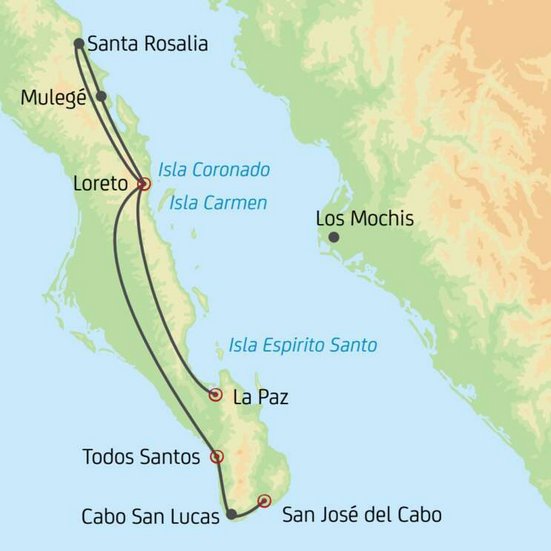 Besichtigen Sie die älteste Kirche der Halbinsel oder beobachten Sie auf einer Bootsfahrt zur Insel Coronado Seelöwen und Pelikane. Weiter empfehlen wir die Fahrt nach Santa Rosalia, wo Sie die von Gustave Eiffel konstruierte Kirche besichtigen können, sowie Mulege.