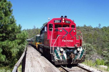 Abenteuerliche Zugreise mit dem Passagierzug «El Chepe» von El Fuerte nach Divisadero. Die Fahrt führt über Brücken, durch Tunnels und eine faszinierende Canyon-Landschaft. Ankunft am späten Nachmittag und Transfer durch Pinienwälder nach Posada Barrancas, wo Ihr Hotel wie ein Adlerhorst an der Kupferschlucht klebt. Am nächsten Tag gelangen Sie mit der Seilbahn in die Kupferschlucht. Sie können Höhlenmalereien besichtigen, über Hängebrücken schreiten oder sich auf eine abenteuerliche Canopy-Tour begeben.