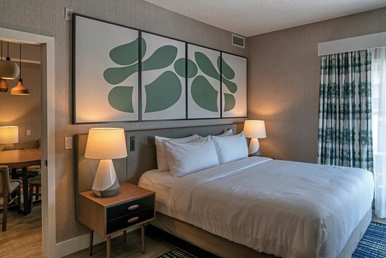 - 51-60 qm, Suite, separates Schlafzimmer, separater Wohnraum, Doppelbetten (1 Kingsize oder 2 Queensize), Sofabett, Dusche oder Badewanne, WC, Haartrockner, Klimaanlage, individuell regulierbar, Mini-Kühlschrank, Safe, Bügelbrett, Bügeleisen, TV, WLAN, Küche, Essecke, Kaffeemaschine