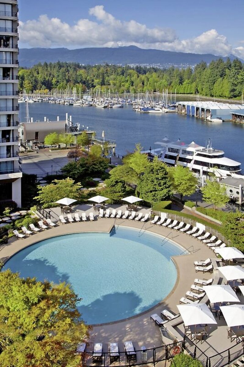 - Komfortables Hotel am Coal Harbour mit Blick auf den Stanley ParkGartenanlage mit Swimmingpool (saisonal)