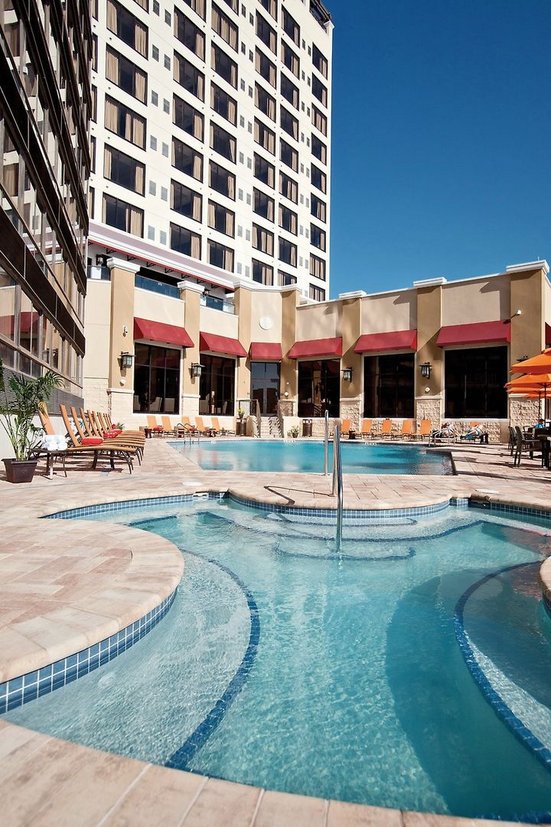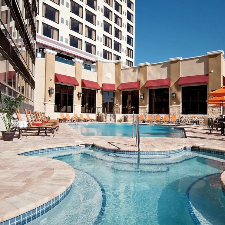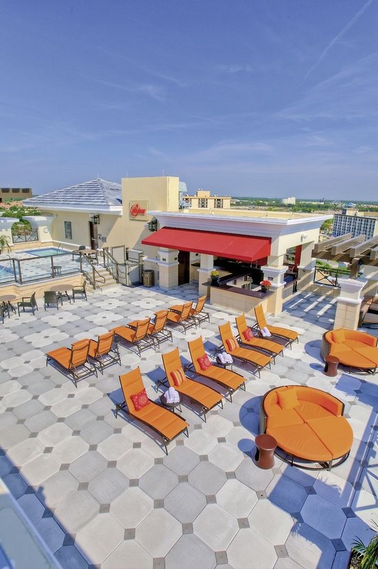 - Gäste der Club Level Suiten erhalten Zugang zur Lounge auf der Dachterrasse mit freien Getränken wie Soda, Bier und Wein von 12-20 Uhr, warme Snacks von 17-18:30 Uhr, Pool, Spa und Fitnesscenter