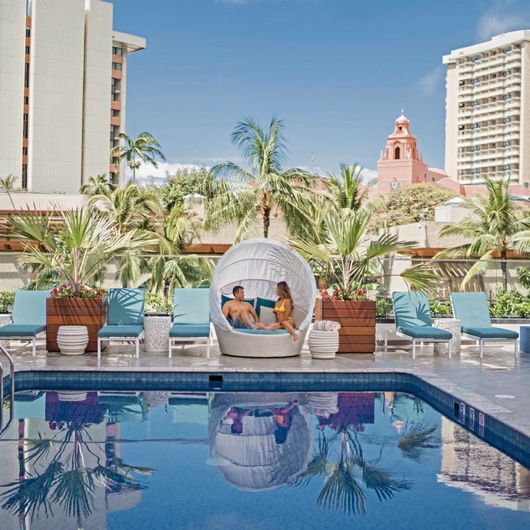 Spüren Sie die Aloha-Energie in diesem Craft-Hotel mit tropischem Insel-Charme: Hawaiianische Kunstwerke und Fotografien zieren die Wände. Kosten Sie dazu die inseltypischen Gerichte, lokal gebraute Biere und mehr.