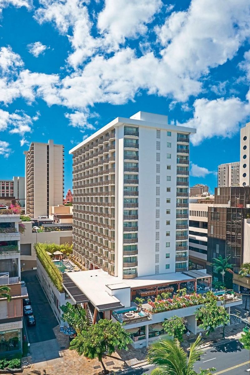 Für ein klassisches Hawaii-Erlebnis: Das Boutique-Hotel ist eine Hommage an das elegante Honolulu der 1960er Jahre, inspiriert vom Mid-Century-Stil, aufgelockert durch moderne Elemente. Der blühende Garten begeistert.
