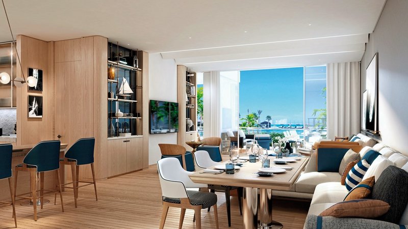 - 151-200 qm, Suite, Meerblick, separater Wohnraum, Sitzecke, 2 Bäder, Dusche, Badewanne, Haartrockner, Kosmetikspiegel, Teppich, Klimaanlage, Minibar, Mini-Kühlschrank, TV, WLAN, Balkon (möbliert)