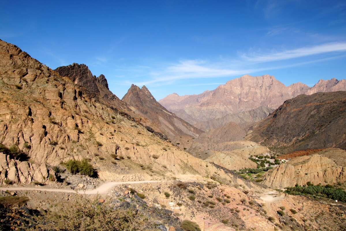 Nach dem Besuch des Fischmarktes in Seeb, geht es zu den heissen Quellen der kleinen malerischen Oasenstadt Nakhl mit ihrem beeindruckenden Fort und anschliessend weiter off-Road durch das spektakuläre Wadi Bani Auf. Die Strecke schlängelt sich durch die bizarre Bergwelt und bietet immer wieder schöne Panoramablicke. Unterwegs Halt im charmanten Dörfchen Bilad Sayt. Weiter nach Al Hamra, das bekannt für seine eindrucksvollen Dattelplantagen ist. Die letzten abenteuerlichen Off-Road Kilometer bringen Sie von dort zum kleinen Berghotel «The View». Geniessen Sie von der Sonnenterrasse des Swimmingpools den Ausblick ins Tal. 2 Nächte im Hotel The View. Ca. 350 km (F, A)