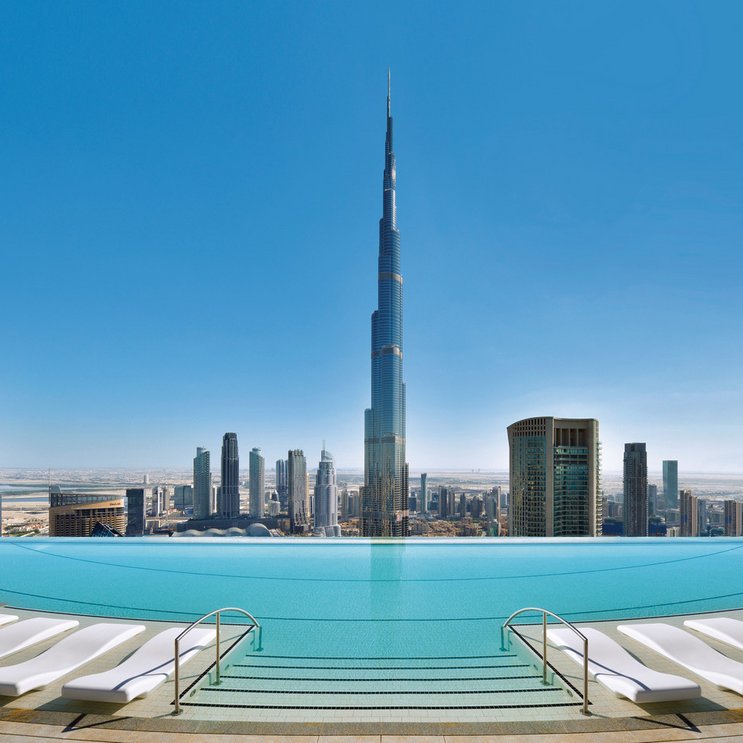 Exklusiver Adults Only Infinity Pool in luftiger Höhe mit atemberaubenden Ausblicken auf die Skyline von Dubai