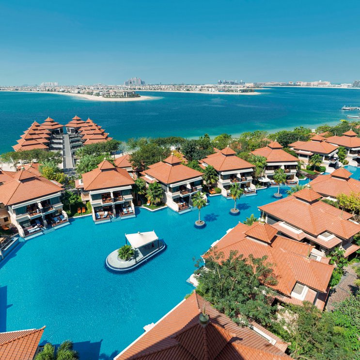 Das elegante Anantara The Palm Dubai Resort wurde mit viel Liebe zum Detail im thailändischen Stil errichtet. Vom 400 Meter langen Privatstrand haben Sie einen fantastischen Blick auf die Skyline Dubais und die künstliche Insel Palm Jumeirah.