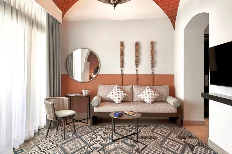 - 51-60 qm, Familien, Innenhofblick, Schreibtisch, Couch, 2 Doppelbetten (Kingsize), Dusche, WC, Bademantel, Badeslipper, Haartrockner, Fliesen, Klimaanlage, individuell regulierbar, Minibar kostenpflichtig, Safe, Bügelbrett, Bügeleisen, TV, WLAN, Wasserkocher, Kaffee/Tee, Balkon oder Terrasse (möbliert), Privater Check-In und Check-Out, spezieller Gästeservice, Zutritt zum The Cove Club Premium Strand, Wi-Fi, Premium-Speise- und Getränke in allen Signature Outlets, 24 Std. alkoholfreie Getränke, alkoholische Getränke 11:00-2:00, Eiscreme 11:00-19:00