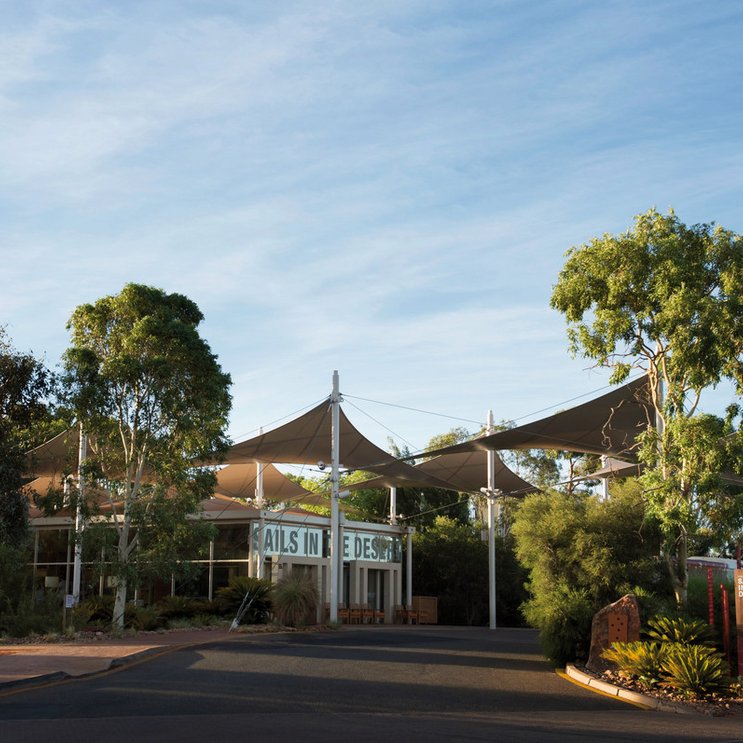Das luxuriöse Sails In The Desert lehnt mit einigen Elementen an die Kultur der Aborigines an, die Sonnensegel bieten Schatten. In der modernen Lobby finden Sie die Kunstgalerie Mulgara Gallery, in der Sie von Aborigines hergestellte Kunstgegenstände erwerben können.