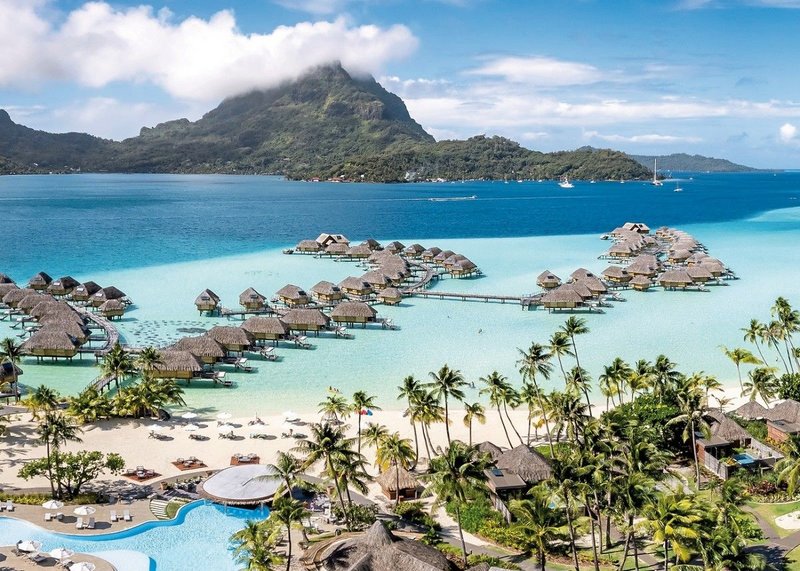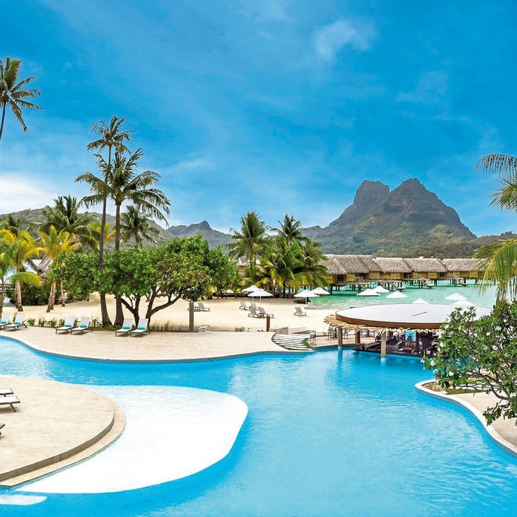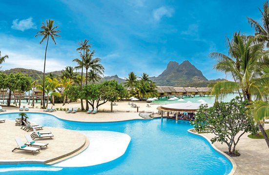 Die wunderschöne Anlage integriert sich behutsam in die Natur! Hier vereint sich eine tolle Lage mit Blick auf die Lagune und den Mount Otemanu mit polynesischer Gastlichkeit.