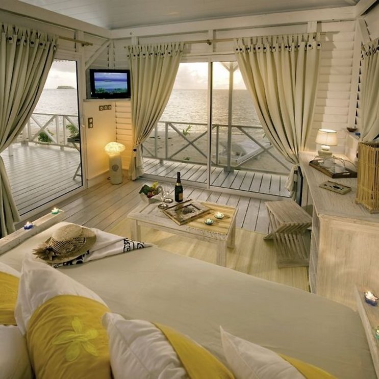 - 46-50 qm, Bungalow, Lagunenblick, Dusche, WC, Haartrockner, Minibar kostenpflichtig, TV, DVD-Player, Musikanlage, Telefon, WLAN, Wasserkocher, Kaffee/Tee, Kühlschrank, Terrasse, direkter Strandzugang
