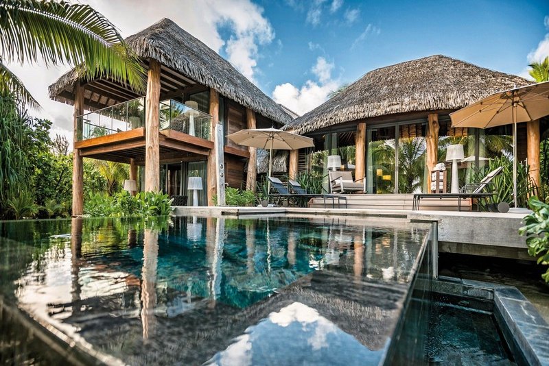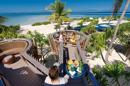 Die Zimmer: Die 36 luxuriösen Villen wurden im traditionellen polynesischen Stil und aus nachhaltigen Materialien erbaut. 22 der Villen liegen entlang des West Turtle Beach, 13 Villen verteilen sich am South Mermaid Bay. Mit separatem Wohn-/Schlafbereich, Kingsize-Bett, begehbarem Kleiderschrank, Bad, separater Außenbadewanne, Föhn, Bademantel, Telefon, WLAN (ohne Gebühr), TV (Flachbildschirm), DVD-Player, Minibar, Safe, Klimaanlage und Terrasse.