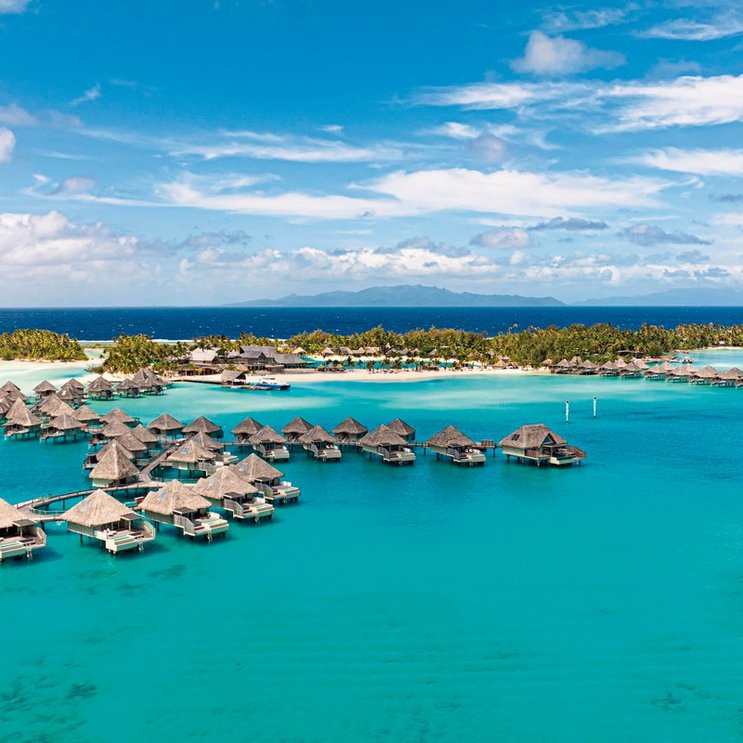 Ihr Sehnsuchtsort im Süd-Pazifik: wohnen in luxuriösem Ambiente, erfrischen im Infinity-Pool, abtauchen in der privaten Lagune. Wunderschön ist der Sonnenuntergang hinter dem Berg Otemanu, z.B. von der Otemanu Bar aus.