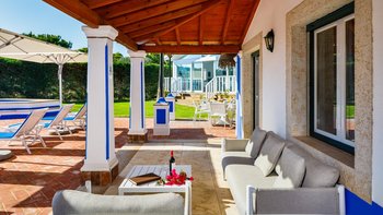 Im Außenbereich befindet sich eine große Terrasse mit einem Kinderbecken und einem 10 m langen Pool für den Rest der Familie, gepaart mit Liegestühlen und Sonnenschirmen mit Blick auf die üppigen Rasenflächen. Neben dem Haus befindet sich ein überdachter Teil der Terrasse mit einem Essbereich im Freien mit eingebautem Grill und weichen Sitzgelegenheiten zum Entspannen im Schatten. Des Spielzimmers ist eine wunderbare Ergänzung zu diesem Anwesen, das am Pool mit Billardtisch, Tischfußball und weiteren Sitzgelegenheiten für Kinder und Erwachsene gleichermaßen gefunden werden kann. Calendula ist ideal für Familien und Gruppen von bis zu sechs Personen, während größere Gruppen auch im benachbarten Miradouro gebucht werden können.