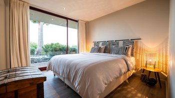 Alle vier Schlafzimmer öffnen sich direkt auf die Poolterrasse und schaffen ein nahtloses Indoor-Outdoor-Erlebnis. Jedes Zimmer verfügt über ein eigenes oder angrenzendes Bad, während die Master-Suite durch ein markantes, raumhohes Fensterbadezimmer hervorsticht, das die Schönheit der umliegenden Natur ins Innere bringt. Mit seiner ruhigen Lage, dem eleganten Design und der Nähe zur Küste der Algarve ist Casa Abracar ein perfekter Rückzugsort für Familien oder Freunde.