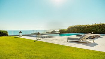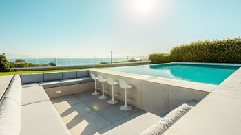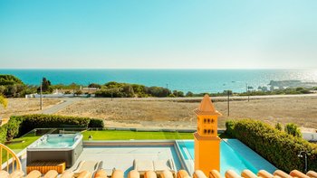Die Außenbereiche sind ein echtes Highlight dieser Villa. Ein spektakulärer Infinity-Pool scheint mit dem Horizont zu verschmelzen und lädt zum Schwimmen ein, während Sie den Blick auf den Atlantischen Ozean genießen. Deren weitläufige Terrasse verfügt über einen Whirlpool, Liegestühle und schattige Sitzbereiche; ideal für Mahlzeiten im Freien oder einfach nur die Sonne der Algarve zu genießen. Deren üppige Landschaft und die freie Aussicht schaffen eine private Oase der Entspannung und Unterhaltung.