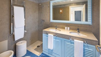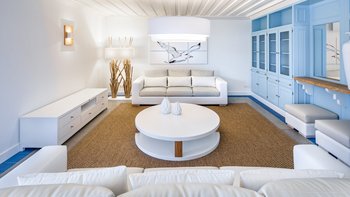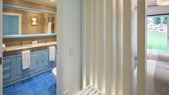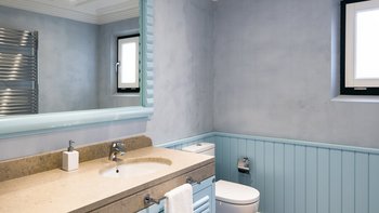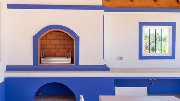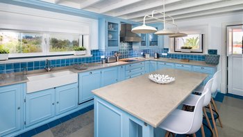 Diese kürzlich erbaute Villa ist eine ansprechende Mischung aus traditioneller Architektur und modernem Interieur in einer beneidenswerten Hügellage mit herrlichem Blick über die Landschaft. Eine geräumige und moderne Küche führt zu einem offenen Grundriss Wohn-/Essbereich und einem Spielzimmer mit Billardtisch, während der Schlafbereich aus drei Doppelzimmern und einem Zweibettzimmer besteht, alle mit Bad oder Dusche en suite. Deren Innenräume sind in einem beruhigenden Farbschema mit kühlen Blautönen, Weißtönen und neutralen Farben gehalten, die an das Meer erinnern.