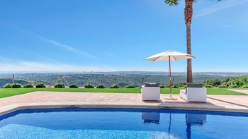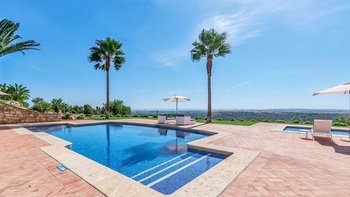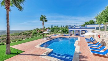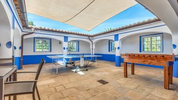 Das Erdgeschoss öffnet sich zu einem teilweise überdachten Innenhof mit Tischfußball und Tischtennis, wo man sich in der Mittagshitze abkühlen kann. Stufen führen zu Terrassengärten mit Bäumen, die reichlich Schatten spenden, und hinunter zur Poolterrasse mit flachen Rasenflächen. Perfekt gestaltet, um das Beste aus dem Panoramablick auf die Landschaft zu machen, finden Sie hier einen großen privaten Pool und ein separates Kinderbecken sowie ein Poolhaus mit Wohn-/Essbereich, Billardtisch, Dusche und Grill. Casa Malhao ist nur 16 km von den Stränden, Geschäften, Restaurants und dem Nachtleben von Vilamoura und Albufeira entfernt, während Boliqueime nur 4 km entfernt ist.