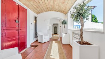 Diese weitläufige Villa ist von außen wunderschön traditionell und von innen stilvoll modern. Mit viel gemeinsam genutztem Raum für Geselligkeit und Entspannung ist es perfekt für Familien oder Gruppen von Freunden. Es gibt eine große, gut ausgestattete Küche / Esszimmer, die zu einem hellen und komfortablen Wohnzimmer führt, beide öffnen sich auf eine überdachte Terrasse, die zum Entspannen und Essen im Freien eingerichtet ist. Zwei Doppelschlafzimmer und ein Zweibettschlafzimmer befinden sich im Erdgeschoss, jedes mit Bad oder Dusche en suite, während sich im ersten Stock ein Doppelzimmer mit eigenem Duschbad und ein Zweibettschlafzimmer mit eigenem Bad befinden. Dessen letzte Doppelschlafzimmer befindet sich im Nebengebäude entlang einer windigen Schotterstraße vom Haupthaus entfernt. Dieser Raum bietet zusätzliche Privatsphäre und eignet sich für ein weiteres Paar oder Teenager. Bitte beachten Sie, dass er aufgrund seiner Lage nicht für jüngere Kinder geeignet ist.