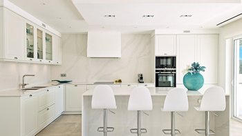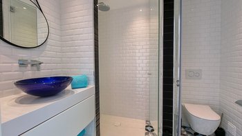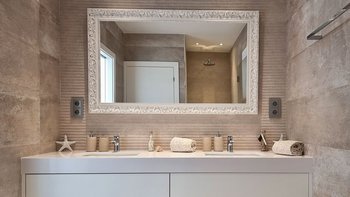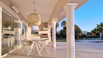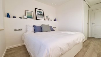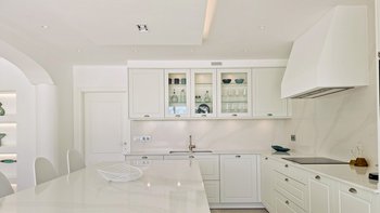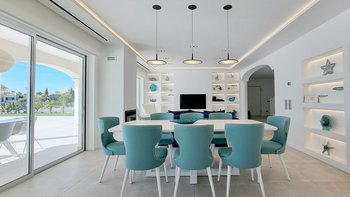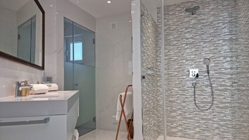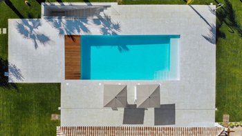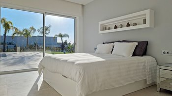Im Obergeschoss verfügt die Villa über drei exquisit gestaltete Schlafzimmer, von denen jedes ein Ambiente der Ruhe und Eleganz für einen wirklich erholsamen Aufenthalt bietet. Jedes Schlafzimmer ist mit einem luxuriösen Kingsize-Bett ausgestattet und durch ein eigenes Bad mit Dusche ergänzt, wodurch ein ruhiger und abgeschiedener Rückzugsort geschaffen wird, der auf den Komfort jedes Gastes zugeschnitten ist.