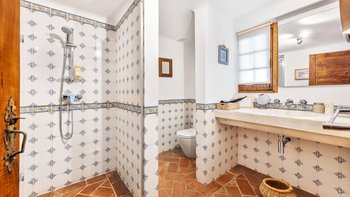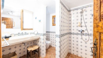 Über eine Außentreppe vom Innenhof gelangen Sie nach oben, um ein ruhiges Wohnzimmer zu finden, in dem Sie lesen können. Ihr Hauptschlafzimmer mit eigenem Bad mit Dusche. Eine private Terrasse bietet einen herrlichen Meerblick.