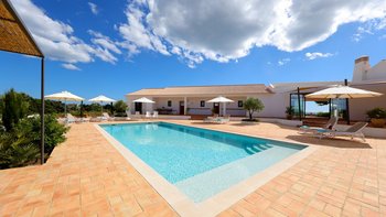 Stilvoll, geräumig und hervorragend gelegen, ist Quinta Brisa ein moderner Rückzugsort, der für ein einfaches, elegantes Leben konzipiert wurde. In einer ruhigen Landschaft etwas außerhalb von Albufeira gelegen, verbindet diese beeindruckende Villa moderne Architektur mit einer ruhigen Umgebung, ideal für Familien oder Gruppen, die sowohl Entspannung und auch einfachen Zugang zu den Highlights der Algarve suchen. Im Inneren ist die Villa hell und wunderschön eingerichtet, mit einem großen offenen Wohn- und Essbereich mit Kamin, modernen eklektischen Mid-Century-Möbeln und einer eleganten Küche mit hochwertigen Geräten und einem ungezwungenen Essbereich. Jedes der fünf Schlafzimmer mit eigenem Bad öffnet sich auf eine Gemeinschaftsterrasse mit herrlichem Blick auf die umliegende Landschaft, ideal für ruhige Morgen oder Abende zum Entspannen. Im Freien erstreckt sich die Terrasse nach Süden zum Meer und nach Norden rund um den Poolbereich und bietet eine Vielzahl von Bereichen zum Essen und Entspannen. Der private Pool ist von Liegestühlen und schattigen Sitzgelegenheiten umgeben, während ein eingebauter Grill und ein frischer Essbereich im Freien das Leben im Freien einfach und angenehm machen.