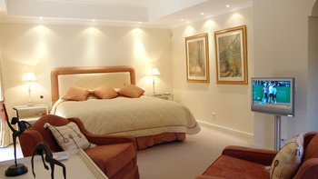 Im Obergeschoss befinden sich zwei weitere Schlafzimmer; ein Hauptschlafzimmer mit Doppelbett und Bad en Suite und ein Doppelschlafzimmer mit Bad en Suite.