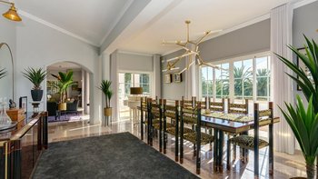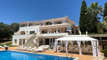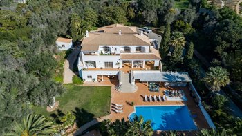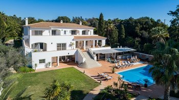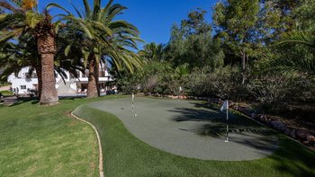 Das Anwesen verfügt über ausgezeichnete Wohnräume im Freien, darunter eine Poolbar, einen Essbereich im Freien und eine Sommerküche. Es gibt auch einen schönen großen Pool, einen Tennisplatz und ein Vier-Loch-Putting-Green. Dessen Villa befindet sich in der Nähe des Meia Praia Strandes sowie mehrere nahe gelegene Golfplätze.