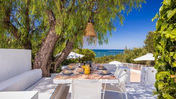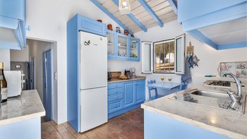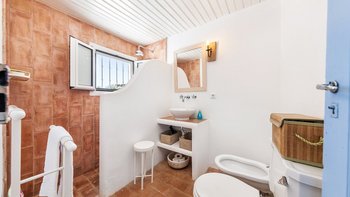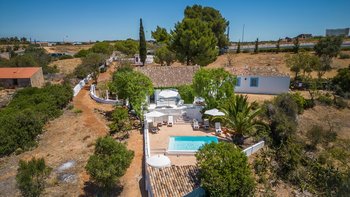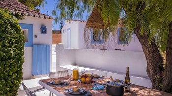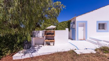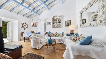 Von den bemalten Dachsparren bis zu den kühlen Fliesenböden vermittelt diese luftige kleine Villa ein echtes „Strandhaus“-Feeling. Deren einstöckige Villa ist durchweg mit bezaubernder Einfachheit in einer klaren Farbpalette von Blau und Weiß eingerichtet und verfügt über zwei oder drei Stufen, die die Räume mit Split verbinden. Deren Haus ist ideal für Familien oder Freunde und verfügt über ein Schlafzimmer mit Doppelbett und zwei Einzelbetten sowie ein Schlafzimmer mit Etagenbett, eine Küche im Landhausstil mit modernen Geräten und ein schönes Wohnzimmer, das das Herz des Hauses bildet, mit einem Essbereich, bequemen Sofas und Satellitenfernsehen. Eine Tür öffnet sich von hier auf die sonnige und geräumige Terrasse mit verführerischem Blick auf den Atlantik und die Mündung des Flusses Arade, Liegestühlen, die schläfrig im Schatten der Bäume liegen, und einem großen Esstisch für ein gemütliches Mittagessen oder Abendessen im Sternenlicht.