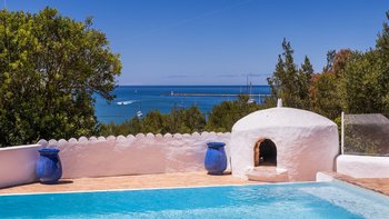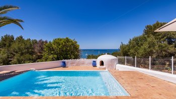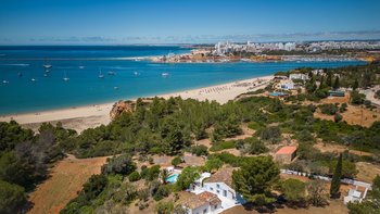 Und direkt unterhalb dieser großen Veranda befindet sich eine gepflasterte Sonnenterrasse, die teilweise in Palmenschatten liegt und einen kühlen Infinity-Pool umgibt. Ein abfallender, gestufter und geschützter Weg führt vom Sandy Bay Cottage zum riesigen, weichen Sandstrand, der nur 300 M darunter liegt. Geschäfte und Restaurants in Ferragudo sind zu Fuß in 1,2 km Entfernung und Tennis, Golf und Wassersport sind im Umkreis von 4 km zu erreichen.