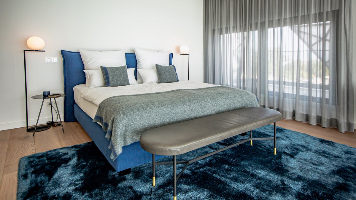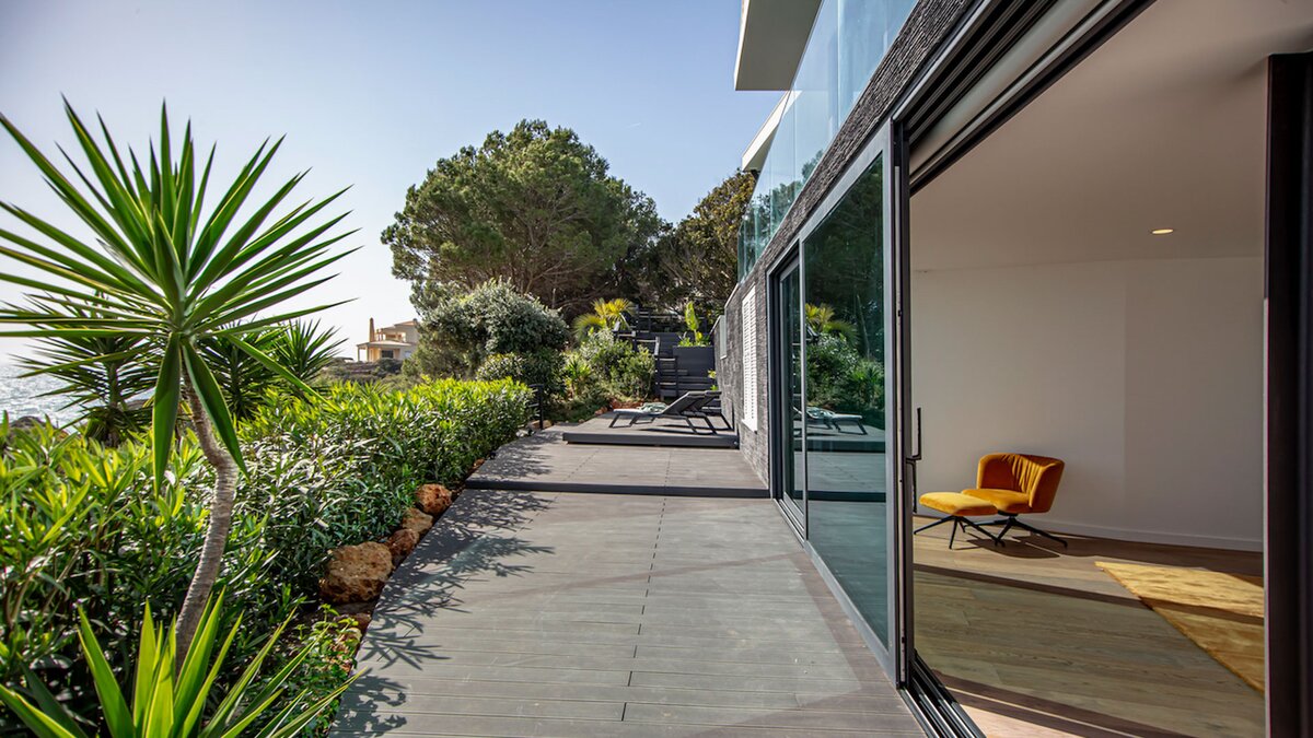 Im Obergeschoss verfügt die Villa über zwei wunderschön eingerichtete Schlafzimmer, die jeweils reichlich Platz für Ruhe und Entspannung bieten. Deren Hauptschlafzimmer verfügt über eine freistehende Badewanne, einen geräumigen begehbaren Kleiderschrank und einen malerischen Blick auf das Meer. Deren zweite Schlafzimmer bietet einen ruhigen Rückzugsort mit viel Tageslicht und komfortablen Möbeln.
