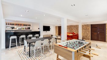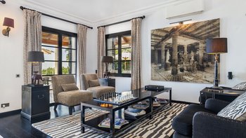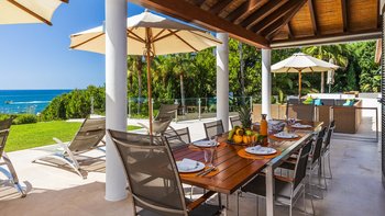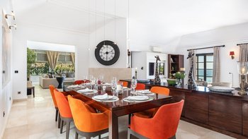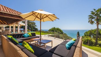 Zu den beispiellosen Einrichtungen gehören ein Fitnessraum, ein Infinity-Pool, der von möblierten Sonnenterrassen umgeben ist, und ein Jacuzzi am Pool und eine Bar und Bar mit Blick auf das Meer. Deren Wohnzimmer ist geräumig, kühl und modern, und jedes der fünf Schlafzimmer verfügt über ein Bad oder Dusche en suite. Kochservice ist hier zum Frühstück und Mittagessen inbegriffen und für den Vier-Jahreszeiten-Komfort verfügt die Villa Balbina über Zentralheizung, Poolheizung und ein Spielzimmer mit Blick auf das Meer. Deren Villa ist zu Recht beliebt und liegt nur wenige Schritte von zwei Strandrestaurants und einen km vom bekannten Restaurant Villa Joya mit Michelin-Sternen sowie Geschäften, Restaurants und Sport an Land und Meer entfernt.