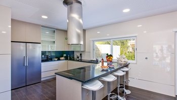 Die schicke, helle und moderne Villa Omar genießt eine beneidenswerte Lage in einer exklusiven Wohngegend, umgeben von den Grünflächen des Golfplatzes. Dessen architektonisches Design hat ein fast futuristisches Flair. Denen geschwungenen, schattigen Terrassen bieten attraktiv eingerichtete Bereiche für Mahlzeiten im Freien und zum Entspannen. Sie blicken auf lange Rasenflächen mit jungen Palmen und mediterranen Pinien. Dies ist die Kulisse für den einladenden Pool der Villa, der mit Mosaikfliesen in markantem Tiefblau gesäumt ist, und für einen eingebauten Grill für ein gemütliches Mittagessen mit der Familie. Die Unterkunft im Erdgeschoss der Villa umfasst ein großes Wohn-/Esszimmer und eine elegante Küche mit Frühstückstheke sowie zwei Doppel- und zwei Zweibettzimmer, jeweils mit eigenem Bad oder Dusche. Im unteren Erdgeschoss befindet sich ein Spielzimmer mit TV und Billardtisch, und es gibt zwei weitere Schlafzimmer, ideal für Kinder. Deren vollklimatisierte Villa befindet sich 6 km von den Restaurants und Geschäften von Vilamoura und 7,5 km vom Yachthafen und dem Strand Praia Falesia entfernt.