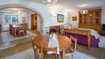 In der Villa Palma, die ideal für das Leben im Freien konzipiert wurde, kann die ganze Familie viel Spaß haben. Auf der Terrasse befindet sich ein 12 m langer Pool für Erwachsene neben einem eigenen Kinderbecken und ein schattiger Essbereich wird von einer Außenküche und einem eingebauten Grill serviert. Es gibt Tischfußball, ein Spielzimmer mit Billardtisch und einen großen Garten mit Rasen, in dem die Kinder spielen können, während die Eltern am Pool entspannen. Deren offene Wohnzimmer im Inneren bietet Platz für die Gäste, auf bequemen Sitzgelegenheiten zu entspannen und im Innenbereich zu speisen. Denen Unterkünfte befinden sich alle auf einer Ebene und verfügen über ein Schlafzimmer mit Doppelbett und Bad en suite und zwei Zweibettzimmer.