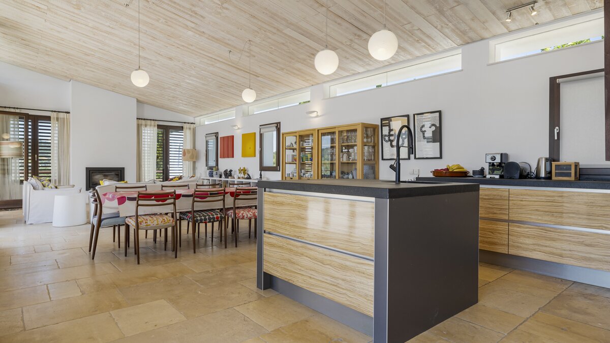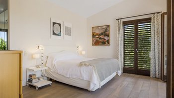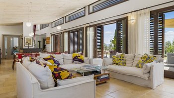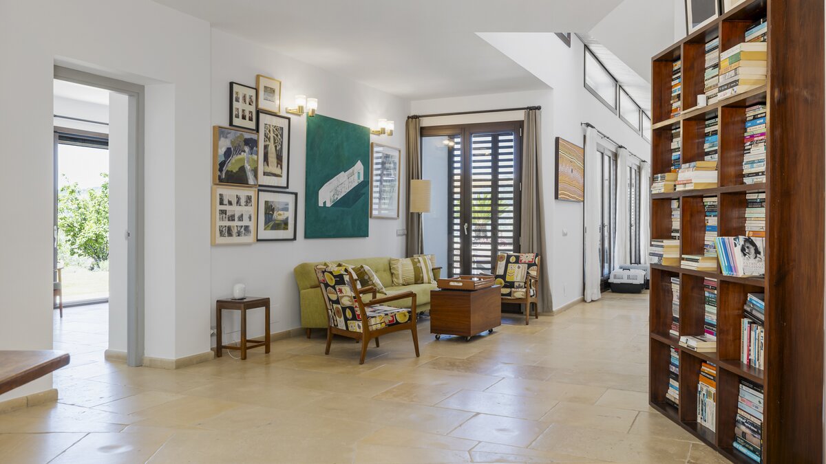 The villa’s design celebrates the light and landscape of Andalucia. Inside, the vast open-plan living space is defined by soaring ceilings, eclectic artwork, and full-length glass doors that dissolve the boundary between the interior and the sun-drenched patios. Whether you are retreating to a quiet library nook with a book or hosting a movie night with the cinema projector, the house has a relaxed, easygoing feel that makes everyone feel right at home.