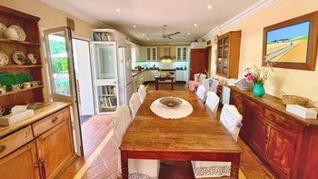 Die Finca la Alameda ist ein schönes altes Haus in einer ruhigen Landstraße im Llano de la Cruz-Tal. Sie ist wunderschön in einem frischen Landhausstil eingerichtet, der genau zu ihrer Lage passt. Dessen Erdgeschoß fließt durch weite Torbögen vom einladenden Wohnzimmer zum fröhlichen Essbereich, während französische Türen auf die Terrassen mit Blick auf den Garten führen, die zum Entspannen eingerichtet sind und voller Topfpflanzen sind, die Farbe und Charakter verleihen. Die Schlafzimmer sind groß und mühelos elegant, die meisten mit eigenem Bad oder Dusche und Zugang zu einer Terrasse oder einem Balkon. Zusätzlich zum 15 Meter langen Swimmingpool beherbergt das Grundstück Walnussbäume, nahegelegene Olivenhaine, einen Gemüsegarten und Fischteiche und einen herrlichen Blick auf die umliegenden Hügel. Auf beiden Seiten der Villa, jede mit eigenem Pool, konnten die kleineren Villen El Laurel und La Rondita zusammen gebucht werden, um einen ausgezeichneten Ort für eine große Gruppe zu bilden. Ronda ist nur 5 km entfernt für Geschäfte, historische Sehenswürdigkeiten und großartige Tapas-Bars.
